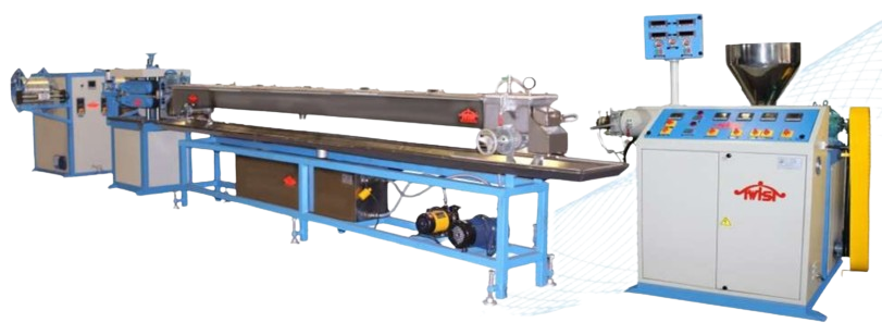 Online cutters for cutting long and small pieces of tubes are different and customized according to customer requirements. Online cutters are equipped with servo motor, controller & encoder or magnetic clutch brake & encoder for precise and accurate cutting length. A winder with a traverse assembly is provided for flexible tubes, if required. Die and calibrating systems will be different for different items/tubes/profiles.